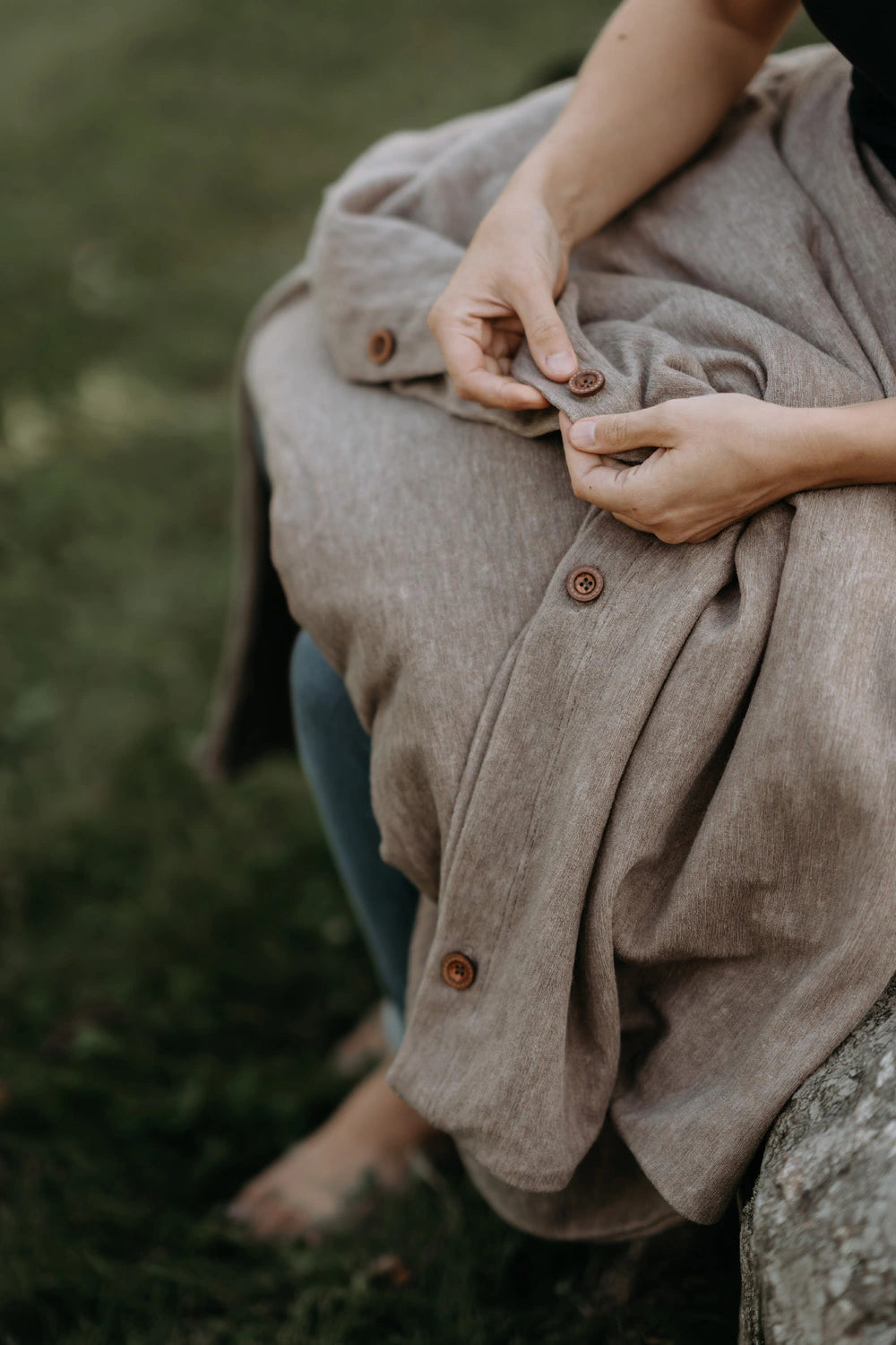 Merinovillan alkuperämaa Argentiina, bambun alkuperämaa Intia. Neulonta ja ompelu tehty Suomessa. Napit puuta.