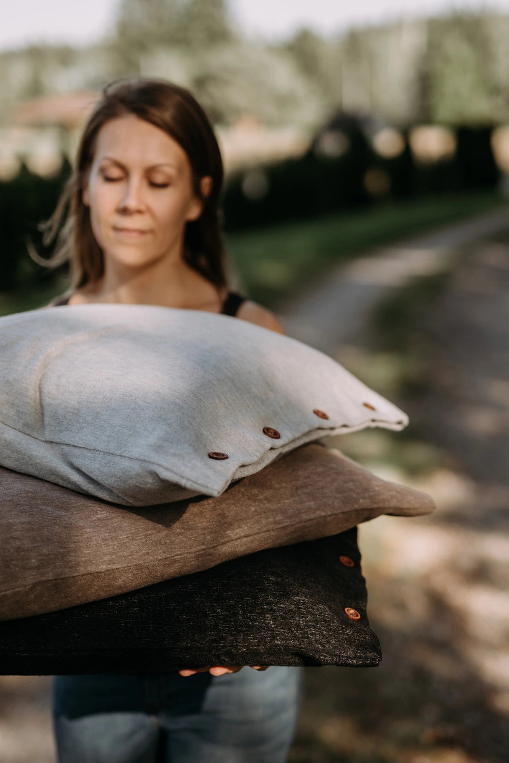 Suomessa tehty merinovilla-bambu tyynyliina tuntuu ihanan pehmoiselta kasvojen ihoa vasten.